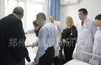 在郑州市银屑病研究所专家们的带领下,来自美国、加拿大的专家们,对医院诊室、药房、治疗室、临床进行了详细的参观指导。外国专家们询问了一些临床患者的治疗状况,不时跟研究所的杨淑莲、刘长江主任共同探讨患者的病情。与会专家对医院蓝氧自体免疫激活疗法、准分子光疗法、中药药浴疗法、中药熏蒸疗法等郑州市银屑病研究所独创的治疗银屑病有效方法表示了浓厚的兴趣。